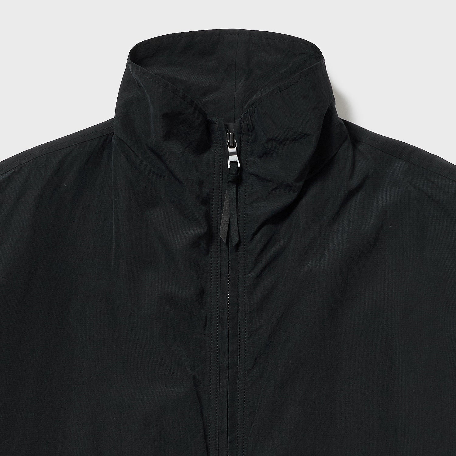 オールドプラダやストーンアイランド、C.P.カンパニーあたりの雰囲気を、化繊に見立てたシルクでドライに表現しました。