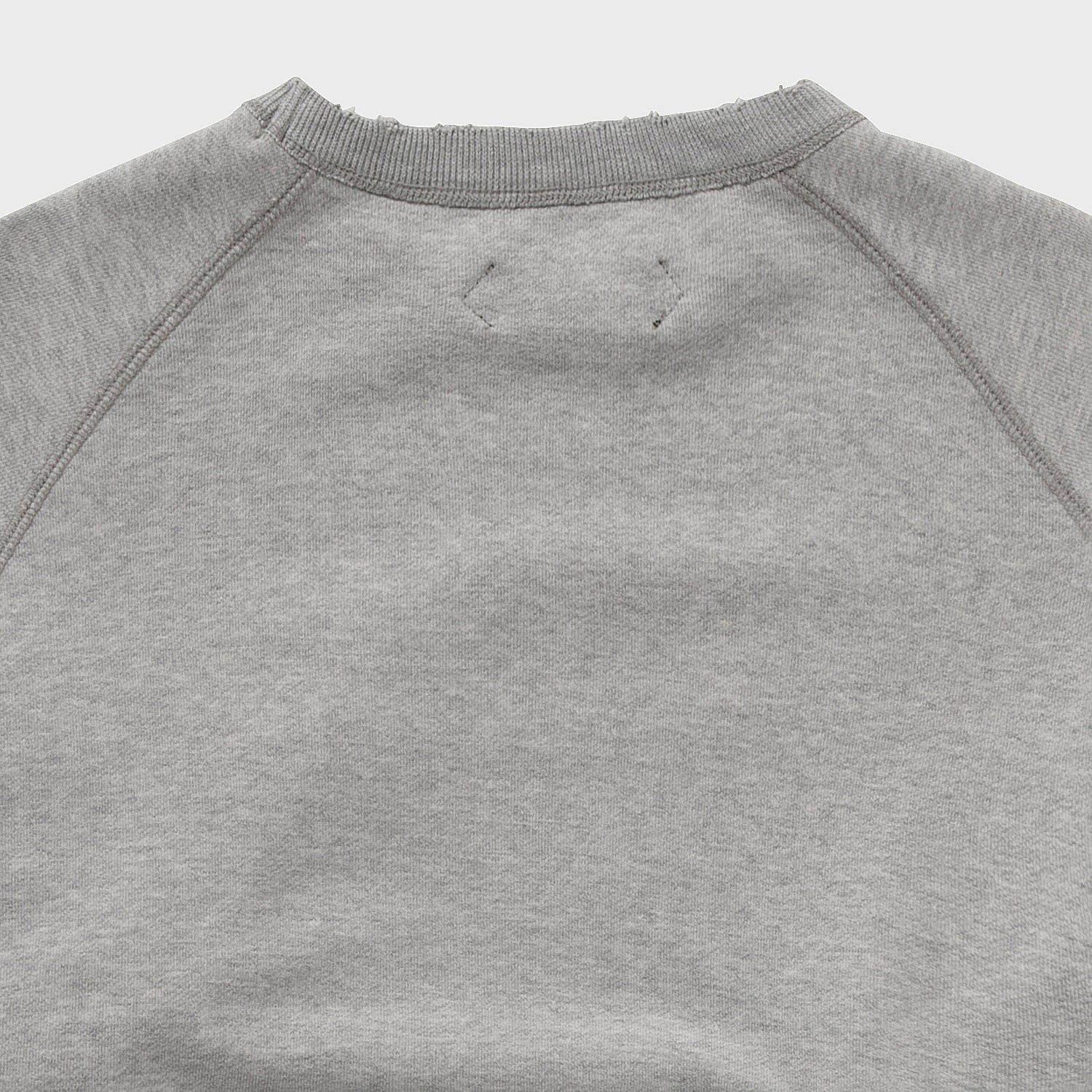 ヴィンテージ目指しのシンカー編み裏毛素材。裏ループが立つよう、あたかも吊り裏毛のような風合い出しに成功した素材。